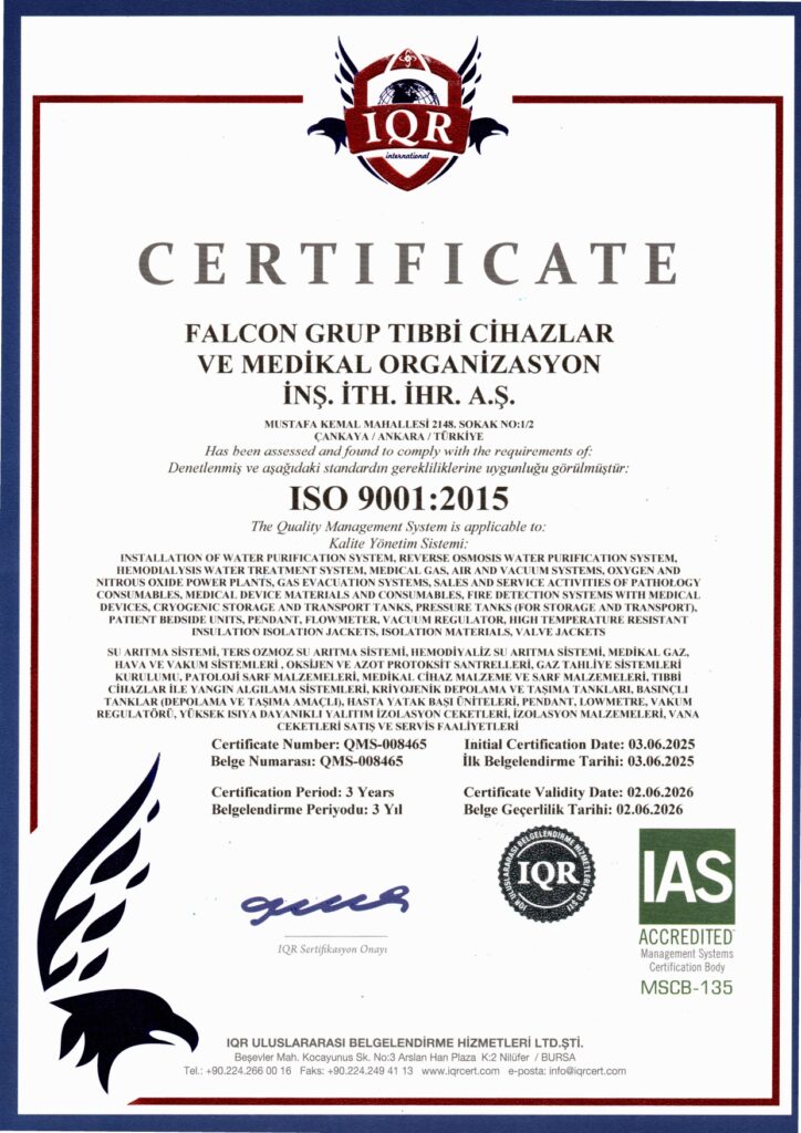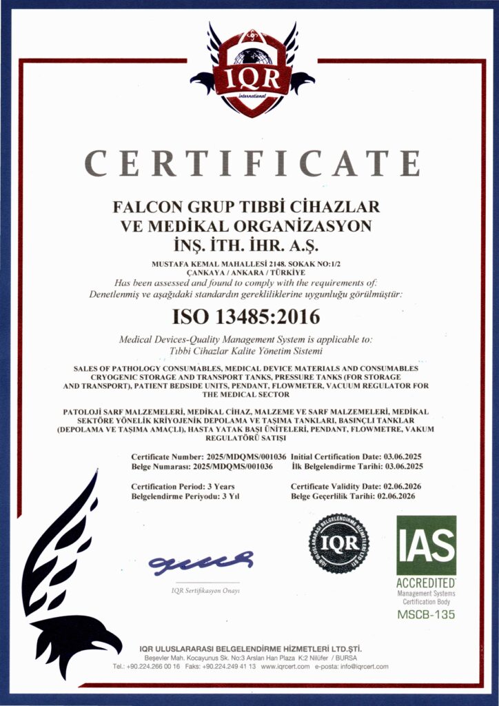Falcon Grup olarak, sunduğumuz ürün ve hizmetlerde uluslararası kalite standartlarına uygun hareket ediyoruz. Kriyojenik vana ve endüstriyel gaz çözümlerimiz, güvenlik, dayanıklılık ve performans açısından gerekli tüm testlerden geçirilerek sertifikalandırılmıştır.